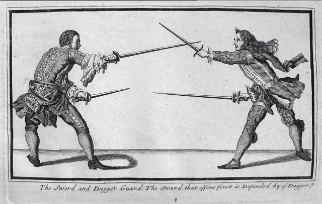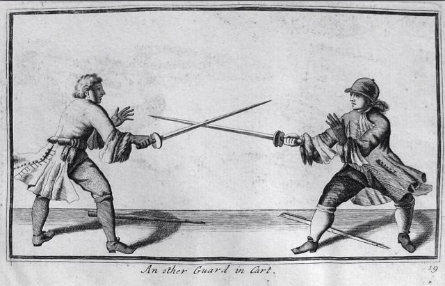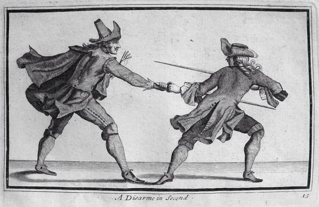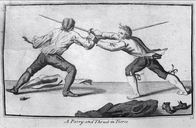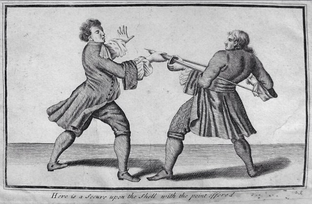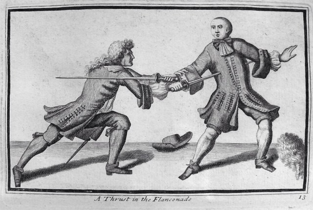 The Art of Fencing Represented in Proper Figures, Exhibiting the Several Passes, Encloses, Disarms, and c. Sold by John Bowles at the Black Horse in Cornhill.
