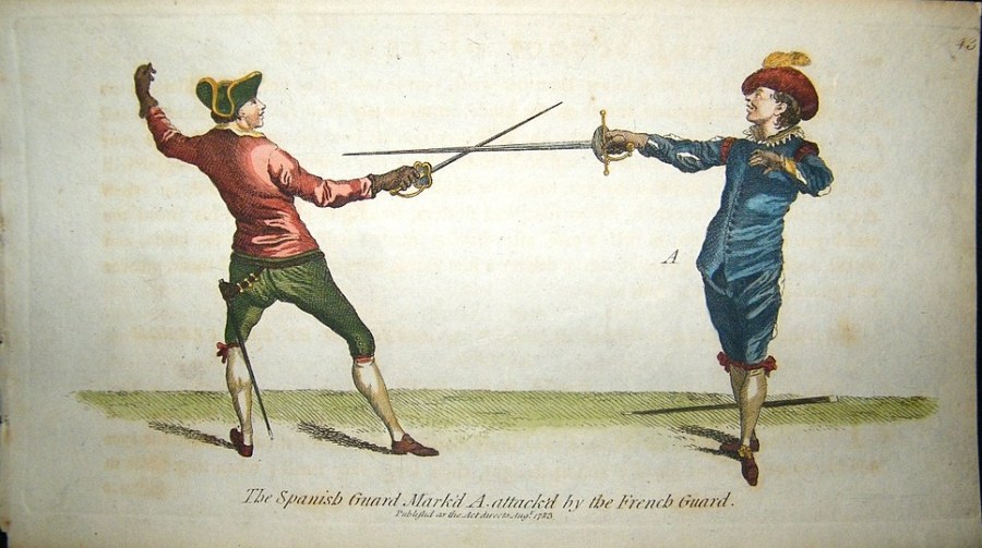 angelo-1783-plate-43-spanish-guard-attack-by-french-guard