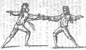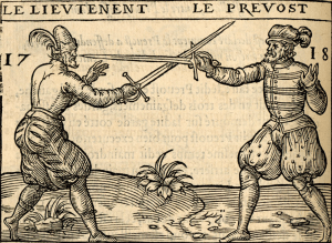1670 Philibert de La Touche publishes Les Vrayes Principles de l’Espe’e Seule published in Paris. He is the first to illustrate the use of the foiled practice weapon, and the last to include use of the estramaçon, a drawing cut with the edge, derived from rapier practice.
